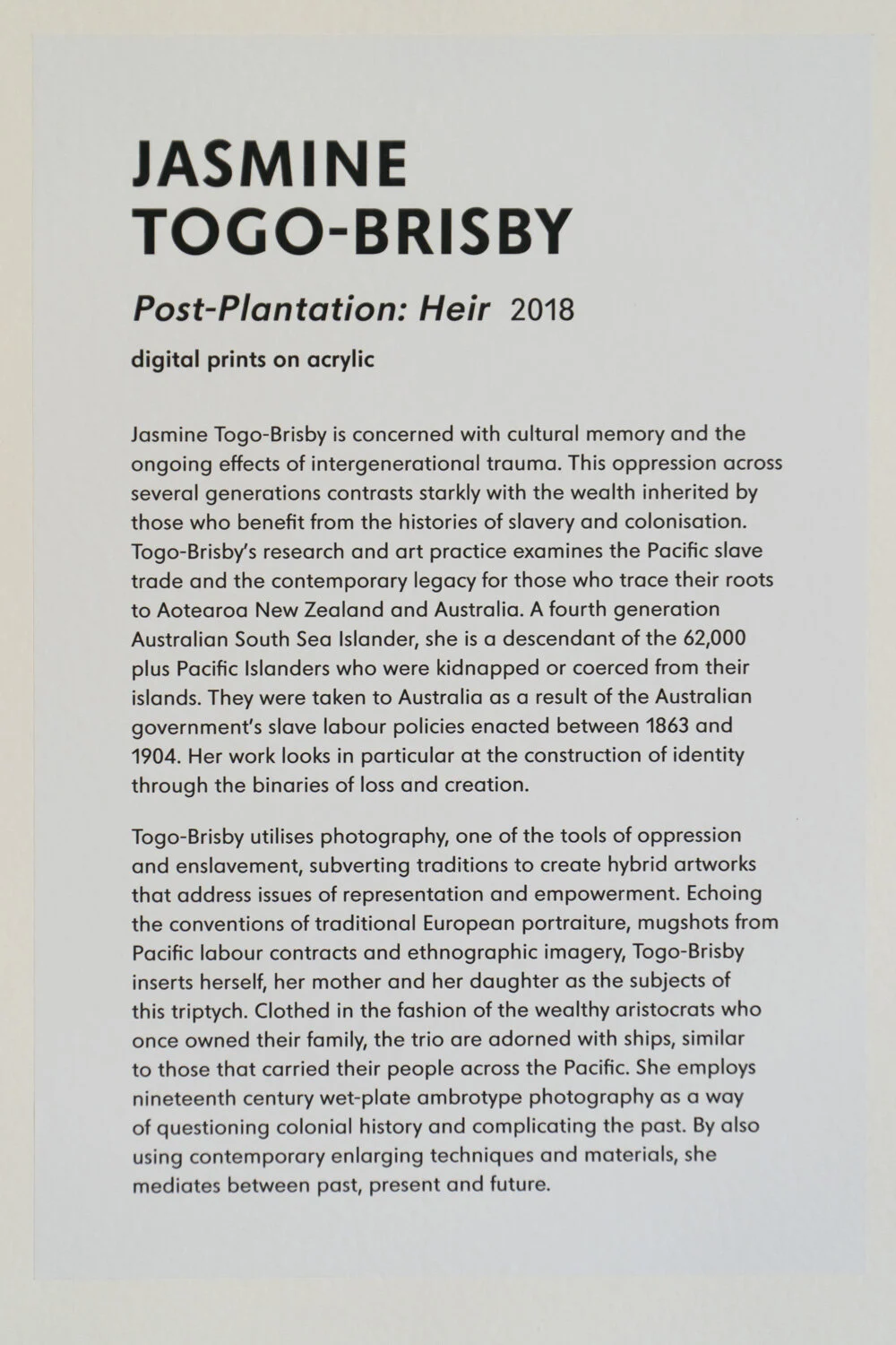 Jasmine Togo-Brisby Post Plantation Heir III, 2019