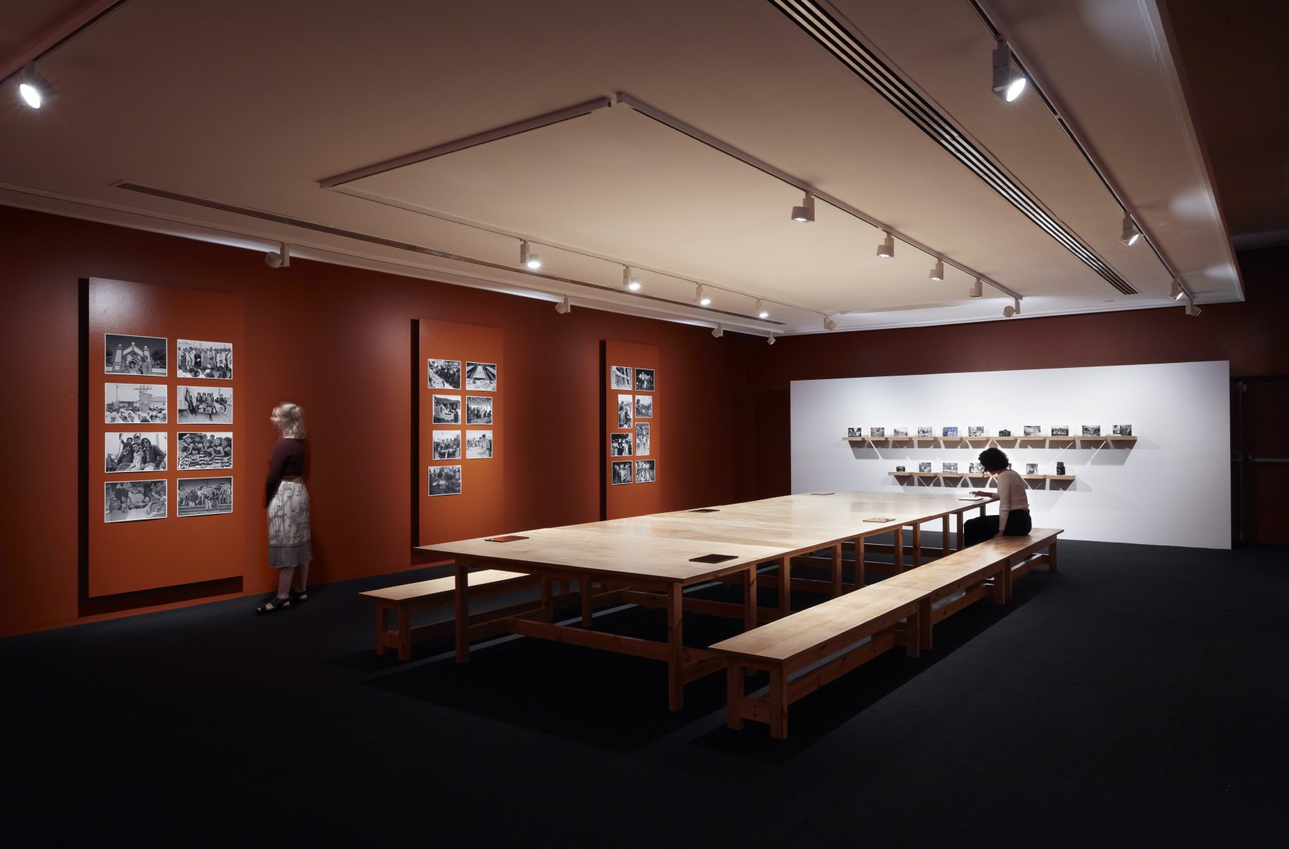 Pouwātū symbolises what this exhibition intends to embody: a statement of active presence. The active presence of Miller’s photographic practice over five decades, dynamic and a view from within; the active presence of a wharenui, a vessel, an ancestor, an archive of a place, a library, a place to meet, sleep, kōrerorero (dialogue), the face of a collective history and of an aspirational future; the active presence people, Māori and tangata Tiriti (non-Māori, constituent communities in Aotearoa, whose citizenship is made possible by way of Te Tiriti o Waitangi).