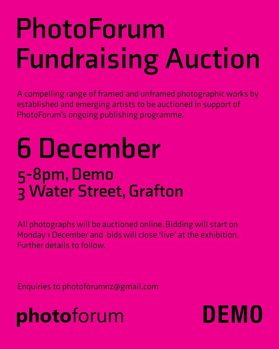 All photographs will be auctioned via TradeMe, with works available for viewing and bidding online from Monday 1 December. All are welcome to the closing event on Saturday 6 December from 5-8pm at DEMO artspace, 3 Water St, Grafton, Auckland. Refreshments will be provided.